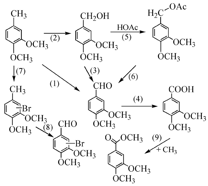 木质素芳香环部分主要由对羟基苯、愈创木基和紫丁香基单元组成。用金属/溴化物催化剂通过均匀的空气氧化将这些烷基芳香环化合物氧化成芳香羧酸是最为有效和经济的方法[7]。