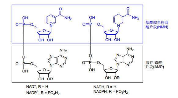 NAD+是由烟酰胺单核苷酸(Nicotinamide mononucleotide, NMN)和腺苷一磷酸(Adenosine monophosphate, AMP)片段通过焦磷酸连接而成(图 1), 其中, NMN是其化学功能的主要承担者, 在氧化还原反应中起到传递电子和氢的作用, 而AMP部分则与功能蛋白质的有关结构域作用而锚定辅酶, 对辅酶的专一性识别和生化反应的立体选择性有重要影响.因此NAD+与其依赖型酶相互作用主要通过改变锚定酶的AMP部分来实现[5].