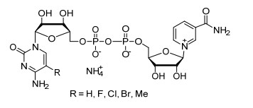 通常焦磷酸键上的负电荷是影响功能位点氧化还原电位的因素之一, 改造焦磷酸键的类似物报道并不多见.通过焦磷酸的甲酯化、三磷酸化、用硫代磷酸等修饰, 这些类似物具有较高的氧化还原电位, 活性较低[17].将焦磷酸键变为单磷酸键的磷酸二酯型NAD+类似物对醇脱氢酶、乳酸脱氢酶均没有检测到活性[18](图 10).焦磷酸改造的NAD+类似物没有或者具有极低的辅酶活性, 说明焦磷酸键在NAD+与其依赖型酶相互作用中发挥着非常重要的作用.